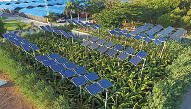Jain Irrigation has innovated Agro-Voltaic concept for crop cultivation + generation of solar power within limited space using special structure. For designing of Agrovoltaic structure crop geometry , crop light requirement, installation requirement of solar module and space availability etc shall be studied in details.
