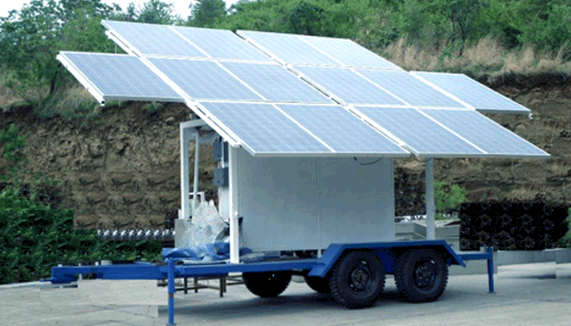 Jains have developed mobile solar generator trailer to address this problem. The mobile solar generator trailer can be designed and configured for various capacities and uses. Common uses are solar pumping system, spot lightning and short duration temporary backup power for remote locations.